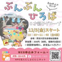 子育てひろばの運営、いのちのふれ合い授業、にしよど冒険あそび場、子育てサークルサポート、地域子育て情報の発信、地域の子育てを応援するネットワーク事業などを行っています。