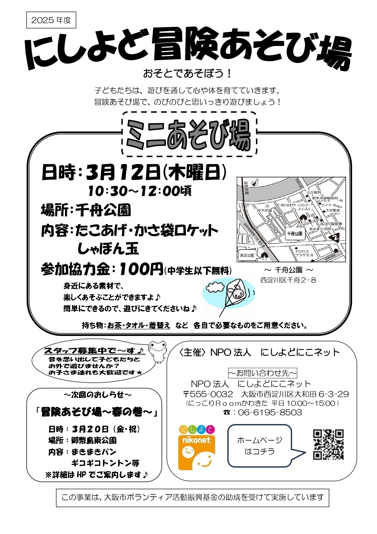 協力:NPO法人にしよどにこネット、NPO法人西淀川子どもセンター、大阪防災企画、にしよどおやこ劇場、NPO法人くるる