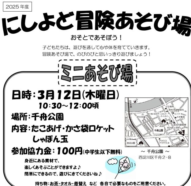 冒険あそび場ミニでは、たこあげ・かさ袋ロケット・しゃぼん玉あそびを企画しています😄